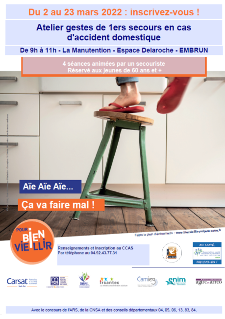 Dans les cadre des ateliers seniors du CCAS, inscrivez-vous aux ateliers pour apprendre les gestes de 1ers secours en cas d'accident domestique.