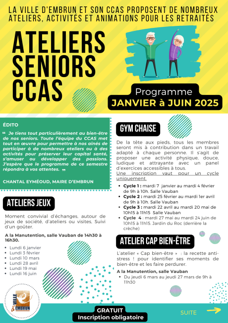 Ce programme sera mis à disposition à l’occasion du Noël des retraités organisé à la salle des fêtes d’Embrun mardi 3 décembre 2024 dès 14h ou dès maintenant en cliquant ci-dessous :