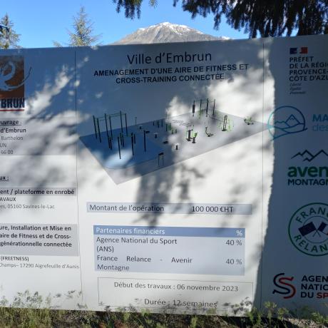 Avancée des travaux d'aménagement d'une aire de fitness et cross-training connectée.