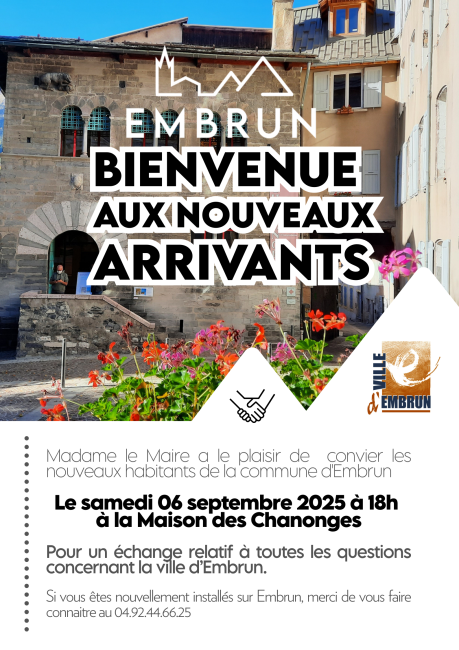 Si vous êtes nouvellement installés à Embrun, merci de vous faire connaître au 04 92 44 66 25.