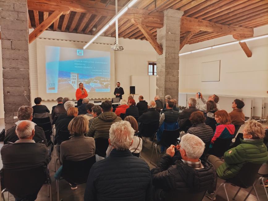 Une première réunion publique s’est tenue le jeudi 1er décembre 2022 afin de présenter la méthodologie mise en œuvre par le bureau d’étude pour analyser les flux de circulation et le besoin en stationnement sur le centre-ville et le plan d’eau.
