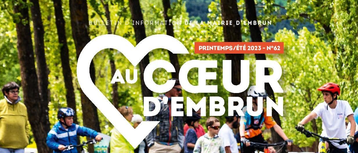 Nous vous informons que le dernier numéro PRINTEMPS 2023 du bulletin d'information de la ville d'Embrun " Au coeur d'Embrun" est à consulter sur le site internet de la ville d'Embrun dans la rubrique "magazine municipal" ou en cliquant sur le lien ci-dessous :