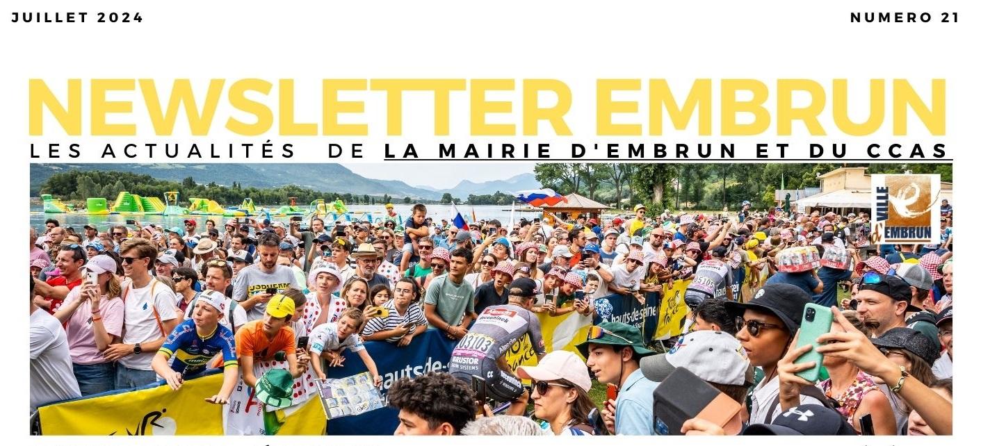 Nous vous invitons à retrouver les actualités de la ville d'Embrun et de son CCAS dans la nouvelle Newsletter du mois de juillet 2024 en cliquant sur le bouton ci-dessous :