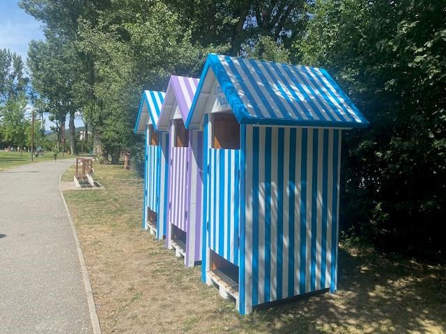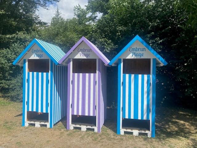 Pour rappel, 6 cabines se trouvent sur la plage nord à proximté du manège et du boulodrome. Celles-ci avaient été inaugurées en juillet 2021 dans le cadre d'une communication vintage autour du concept « Embrun Plage », à l'occasion des 60 ans de la création du plan d’eau. Elles avaient été conçues par l’association « Et si c’était AVEC… », avec du matériel recyclé.