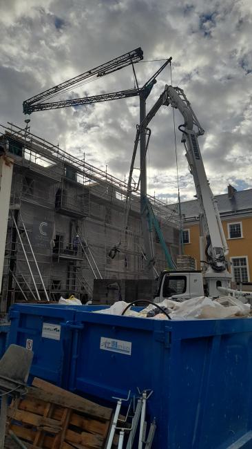 - D'ici fin février la grue de l’entreprise Eurotoiture sera installée pour engager les travaux de confortement puis de reprise de la toiture.