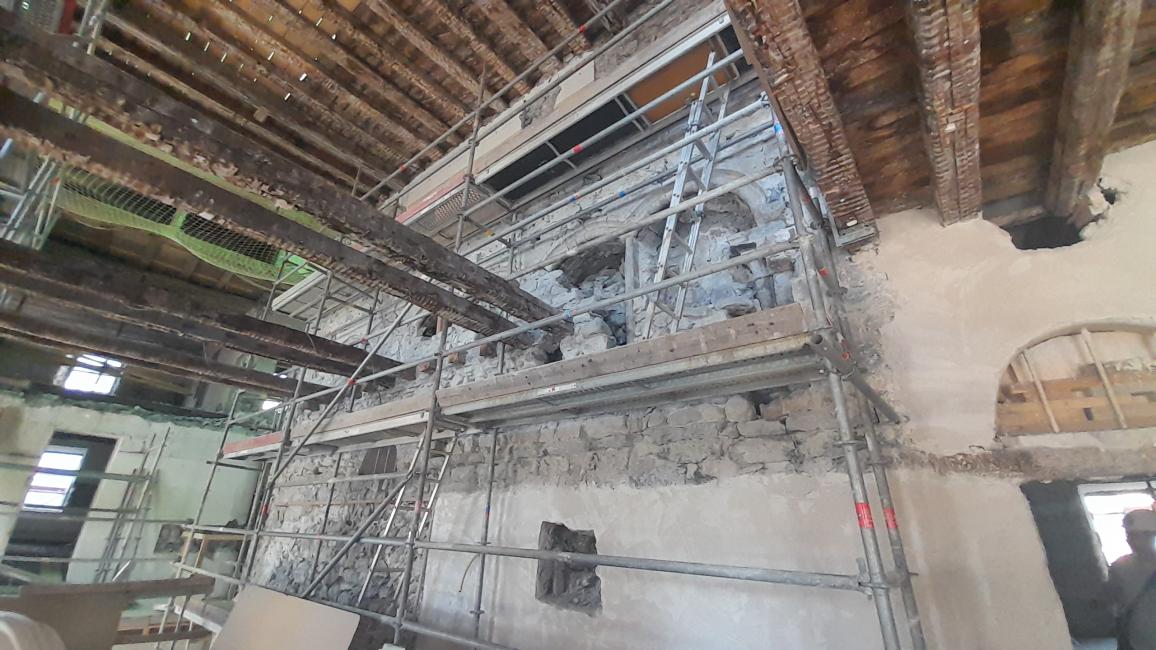 - L’échafaudage a également été monté au niveau du mur médiéval pour permettre dans les semaines à venir la restauration des baies géminées.