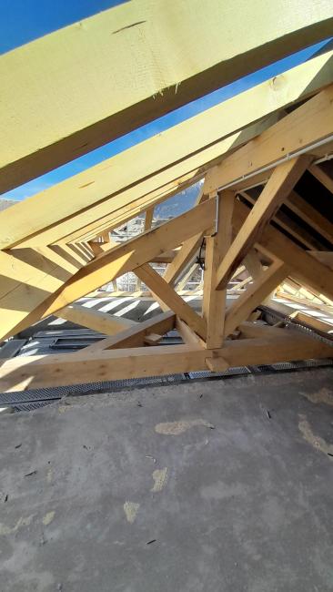 - La ferme n°1 de la toiture a été entièrement reprise ce qui va permettre de finaliser la mise en place des 2 dernières jacobines.