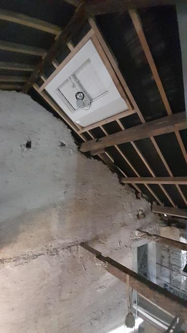 - La toiture étant totalement désamiantée, les Compagnons de Castellane ont finalisé le curage des combles (plafonds, murs, …) qui étaient rendus inaccessibles pour des mesures de sécurité en raison de l’intervention des désamianteurs.