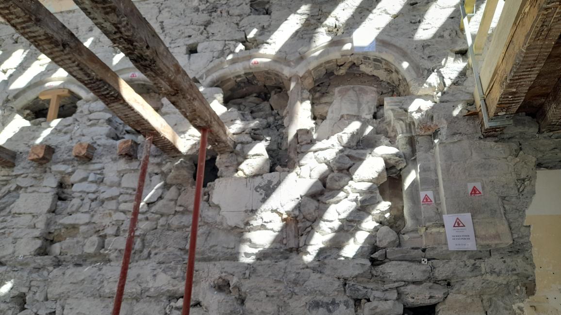 - Au niveau des baies géminées, les pierres et les planchers sont démontés laissant apparaitre la futur ouverture qui sera créée dans le cadre des gradins de « l’heure du conte »