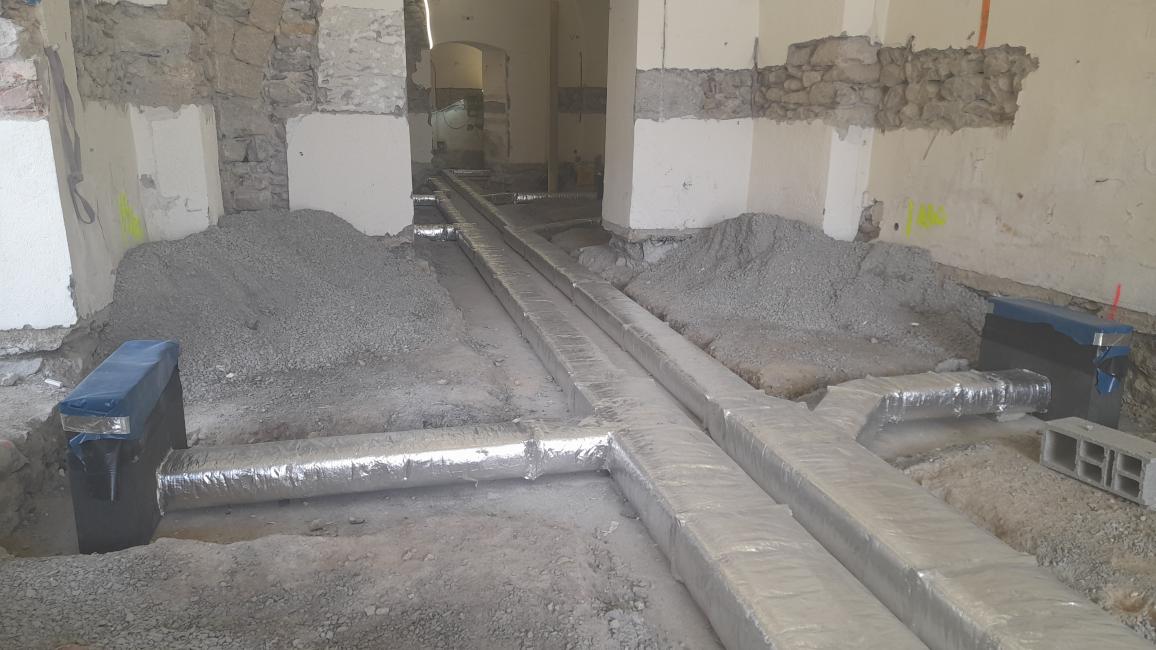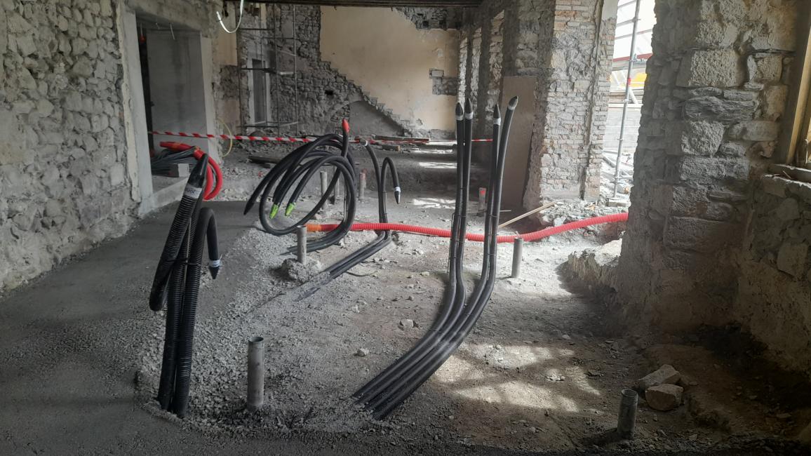 - Mise en place des réseaux divers au rez-de-chaussée (électricité, eau potable, chauffage)