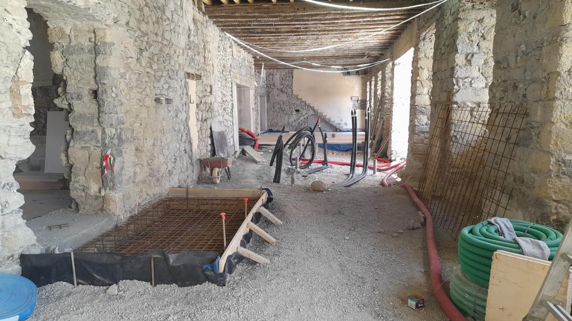 - de creusement des dalles du rez-de-chaussée pour y accueillir les futurs réseaux divers (chauffage, assainissement, électricité).