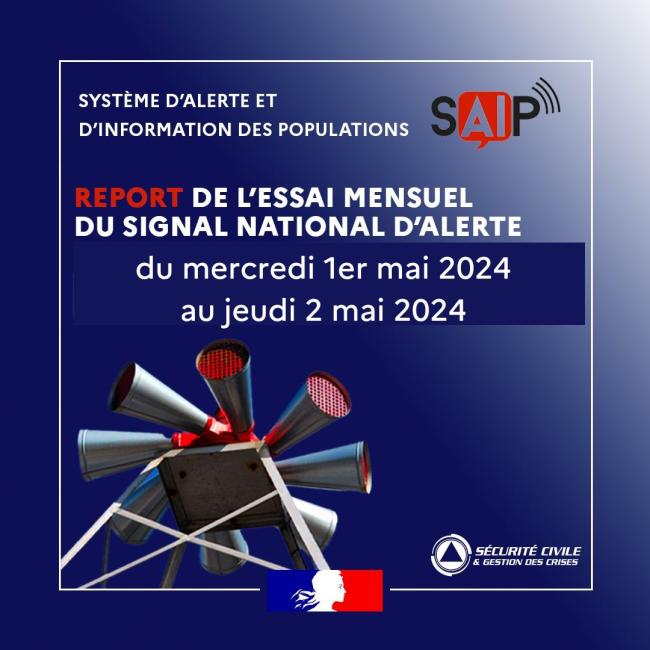 Report de l'essai mensuel du signal national d'alerte au jeudi 2 mai