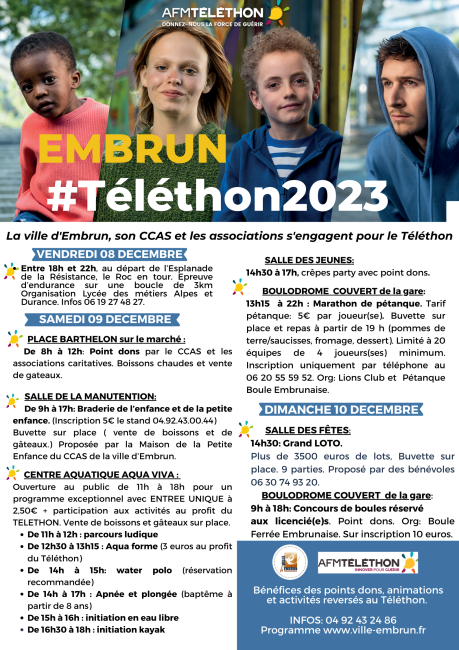 De nombreuses animations seront organisées à Embrun au profit du Téléthon du vendredi 8 au dimanche 10 décembre 2023.