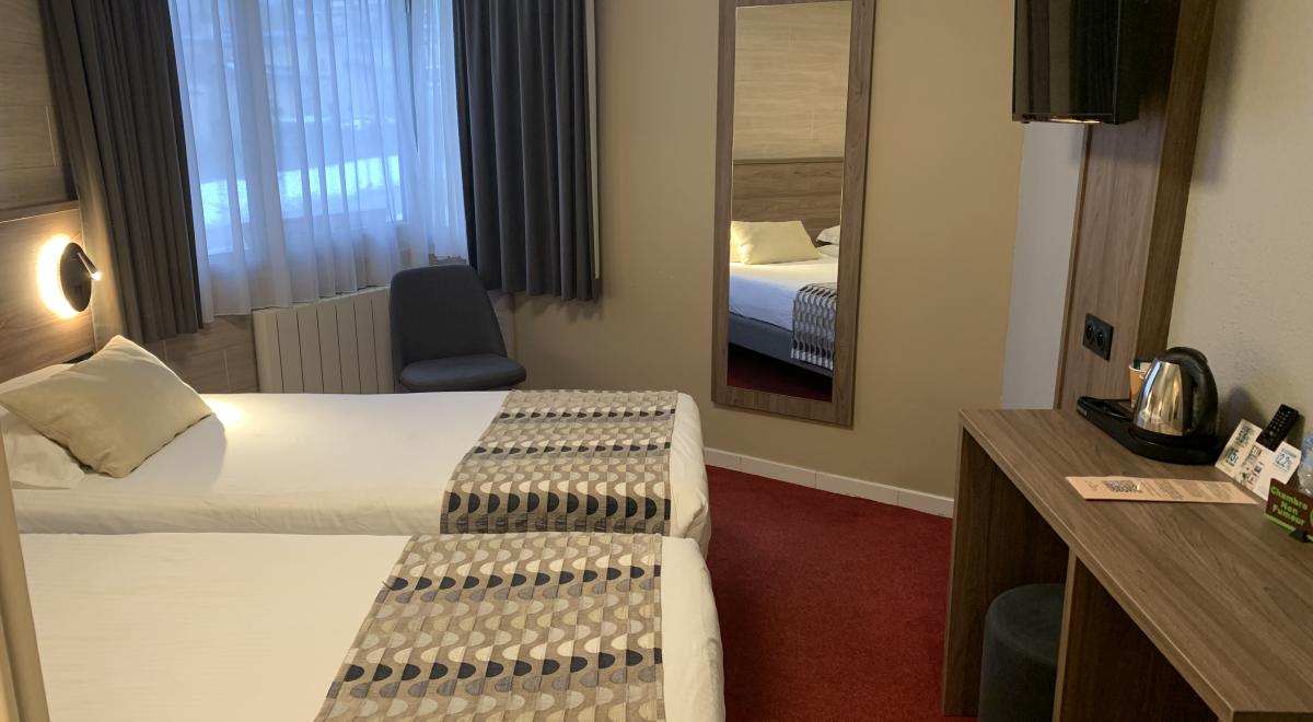 La chambre Standart est située côté rue. La chambre Confort est située côté jardin avec climatisation, mini frigo et machine à café