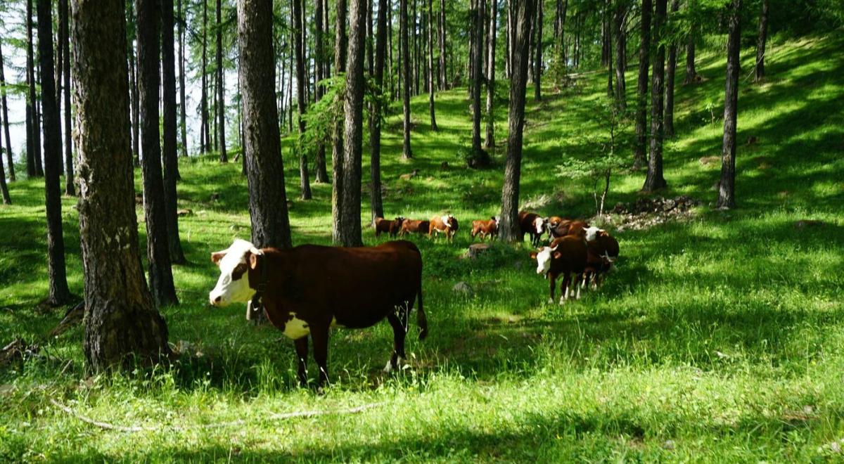 These beautiful mountain pastures that stretch upwards towards the summit are dotted with herds of cattle and sheep. With a combination of grass, clear larch forest beads, rocks , water and flower carpet, a harmonious and charming landscape is created.
